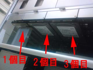 今回のこのお客さん、内臓HDDを2つ追加して計3個で運用です。