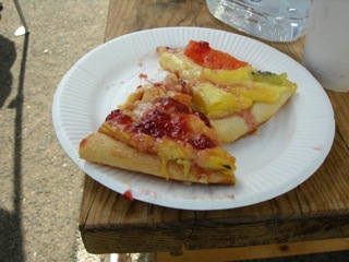 焼き上がった美味しいピザはあっという間に消えていきます。私は今日はかなり頑張って配膳係をやったつもりなんですが、その分、焼きあがったピザの写真はコレ1枚のみ。