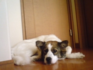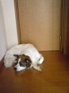 楽しすぎて、AM4:00頃にウチ帰ってきた直後、寝ぼけてるニコのところへいき、そのまま、車庫の犬のケージの中で寝てました。