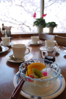 ここはなんといっても窓に広がる桜が凄いんです。店内は2Fなので、真横に桜が。