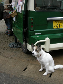 ニコを繋いでいた位置の関係で、パッと見、すっかり旅カフェさんの看板犬でしたねー。