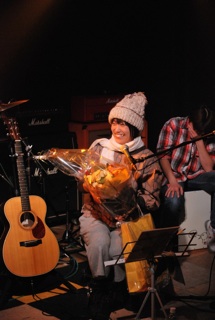 あいちゃんは先日誕生日を迎えたばかり。「27歳にもなって髪の毛こんな真っキンキンにしちゃって」みたいな事をよく言って話のネタにしてるけど、似合ってるしカワイイし、ミュージシャンはそれくらい派手な部分もなきゃイカンよ。前の茶髪も良かったけど、今の方がよりいいと思うなー。なんせステージ栄えしてんじゃんね。