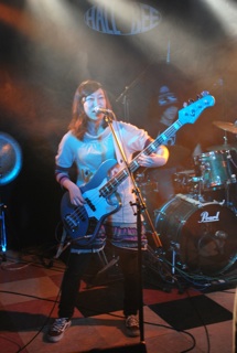 このベースの彼女アベトモコちゃんも可愛いかったー。こんな女の子っぽい衣装で足をガッと開いてゴリゴリとベース弾いてるのに笑顔がまた女の子って、ヤバいわ、ロック好きなオジサンは一発でハート打ち抜かれちゃいますよ。