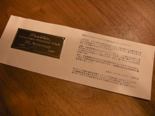 そんな記念の年、たまたまこの時期にクラブに参加していた幸運を分かち合うために、記念プレートを作る事になった。